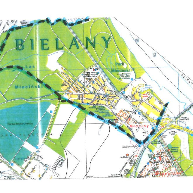 Terenem działania Samorządu jest obszar ograniczony ulicami: brzegiem Wisły, ul. Prozy, ul. Zgrupowania AK Kampinos, ul. Książąt Mazowieckich, ul. Improwizacji, granicą Huty Arcelor Mittal Warszawa, ul. Anny Jagiellonki, osią drogi leśnej (dawną ul. Dankowicką), granicą administracyjną Dzielnicy Bielany z Gminą Łomianki, ul. Pułkową, ul. Dziwożony do Wisły.
