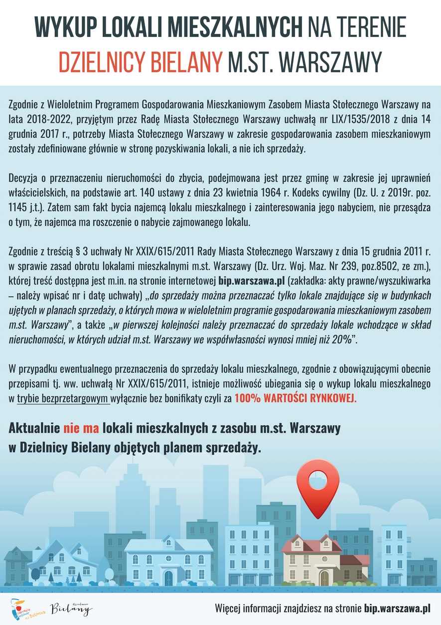 Wykup lokali mieszkalnych na terenie Dzielnicy Bielany